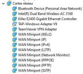 Ouvre Gestionnaire de périphériques, déroule l'onglet Cartes réseau puis fais une capture écran.