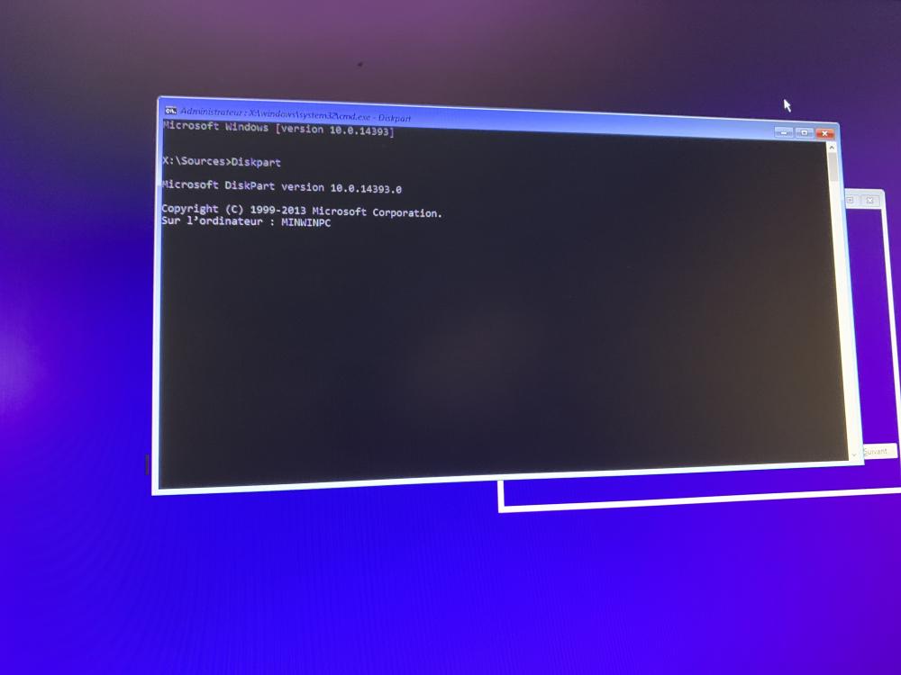 le plus perturbant dans tout ça c’est qu’au début ça se lançait très bien, j’ai pu commencé le formatage jusqu’à ce qu’il me dise une erreur du au format gpt (je suis sorti pour changer une option dans le bios et réessayer et depuis je ne peux plus)