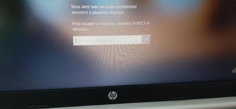 Ma fille a un ordinateur portable HP, pour une raison que je j'ignore, il est impossible de se connecter et donc de se servir de son portable. Il s'allume, puis demande tout le temps d'écrire le code confidentiel pour l'utiliser, mais il n'y a pas la zone en dessous pour se connecter d'une autre façon, pour afficher le mot de passe par exemple. Cela indique qu'il faut taper en dessous le code affiché au dessus pour vérification...C'est ce que j'ai fait, puis j'arrive à nouveau au même point, c'est à dire, bloqué par la demande de code confidentiel.