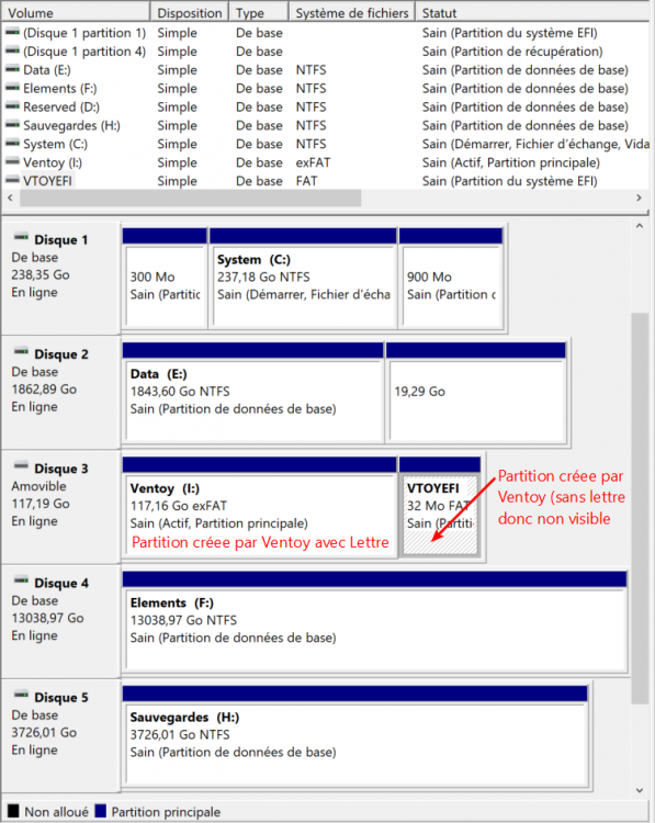 A cette étape une déclaration manuelle de ces partitions est inutilisable par Ventoy.
