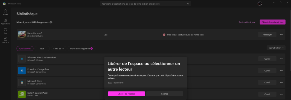 Bonjour, Depuis quelque temps, je ne peux pas installer de jeux Sa me dis que j'ai plus de place sur mon disque Alors, que j'ai un 2ème disque ou je veux mettres mes jeux dessus et qui à 2000 Go Sa me propose pas du tout de pouvoir séléctionner le lecteur pour pouvoir télécharger les jeux dessus Voir les captures d'écrans Donc, je sais pas comment faire pour que le disque secondaire sois détécté dans Windows Store