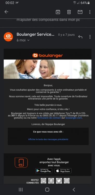 Par ce que je sais que on peux le faire et que si y'a une panne autre de l'ajout du composant que sa prenne en compte par le constructeur mais la j'ai souscrit une extension au vendeur et si je l'ouvre j'ajoute mon disque dur et bah j'aurais payer pour rien