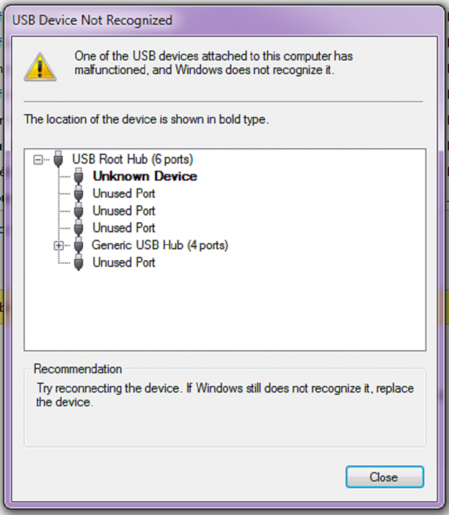 9. Bonjour Zelandonii, J'ai le plaisir de te joindre ici la capture d'écran du message d'erreur concernant la clé USB en question. Désolé le message est en anglais car c'est la langue que j'utilise. Mais bref, comme tu le comprends certainement j'imagine, ça dit que la clé USB connectée a mal fonctionné et Windows n'a pas su la reconnaître et par conséquent la clé n'est pas lisible quoi ! Pour résoudre le problème, le message d'erreur préconise d'essayer de reconnecter la clé USB et que si le problème persiste, de carrément jeter ladite clé . Ce qui n’est pas du tout à l’ordre du jour. Je compte tout faire pour récupérer les données perdues .