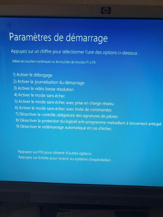 Voici le prochain écran, je dois cliquer sur le 4 ? J'espère qu'après cela tu pourras me remettre le démarrage en normal directement en arrivant sur le bureau comme avant