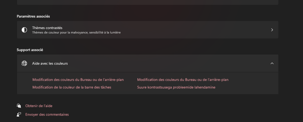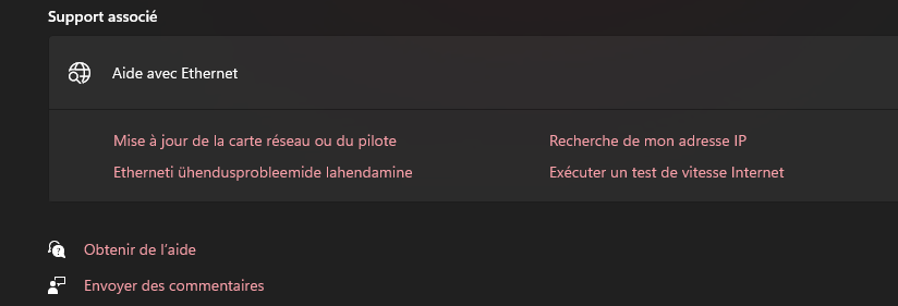 Bonjour, Je me suis aperçu que de temps en temps dans le paragraphe support associé que pour l'aide le language est bien enfrançais et un ligne en estonien !! J'ai ce problème sous personnalisation couleurs et ethernet . J'ai bien verifié la langue de windows dans heure et langue , tout est defini en français. Avez vous une petite idée de ce problème ; mon wwindows est 11 avec 25h2. Merci d'avance bonne journée.