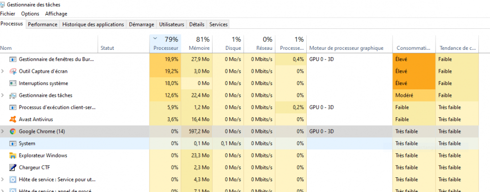 Outil capture servait à prendre l'écran. Ce qui fait après l'arrêt de celui-ci que le + gourmand : c'est variable en fait il faudrait une vidéo pour bien saisir la variation. Je vais essayer ! A +