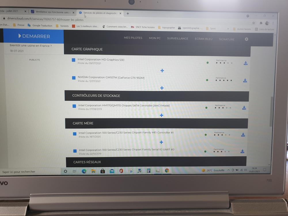Je suis sur un portable Lenovo avec une souris connecté et un écran 21 pouce. Je suis à jour windows 10 20H2 quand aux pilotes drivers ?