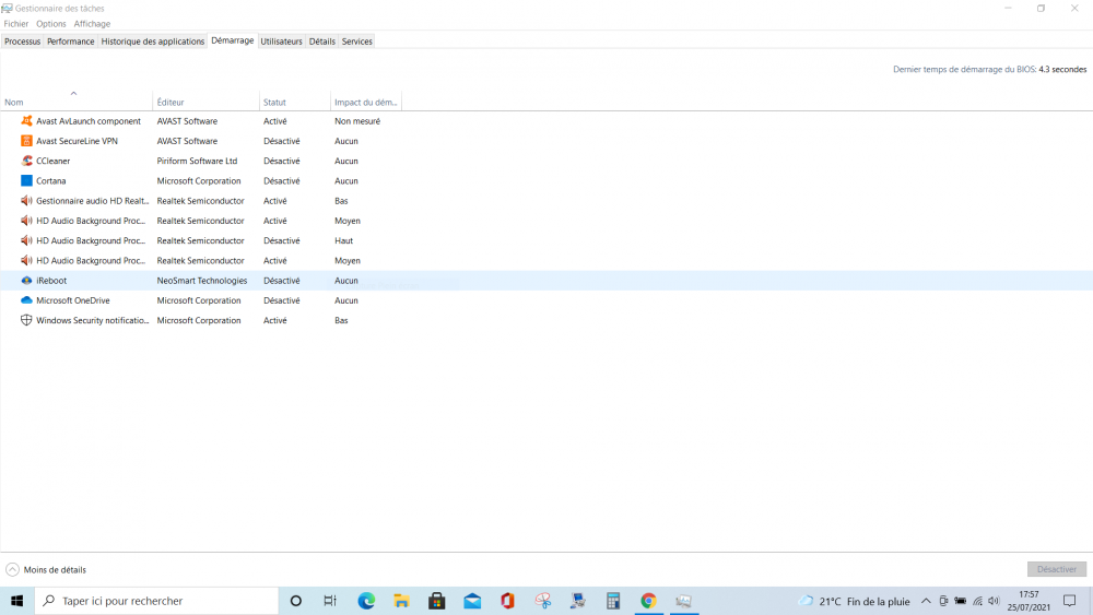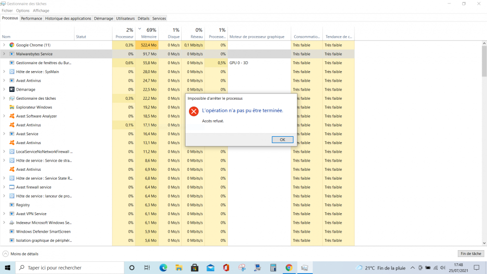 OK, je vais voir pour l'achat, je crois que Boulanger ne fait plus de la RAM en magasin: trop couteux et peu de vente selon un vendeur. J'ai enlevé malwarebyte, je vais refaire un redémarrage de l'ordi on verra la différence pour la mémoire car cela n'a pas bougé de beaucoup. rester à l'ombre, je préfère le soleil du sud les doigts de pieds écartés avec une coupe à la main