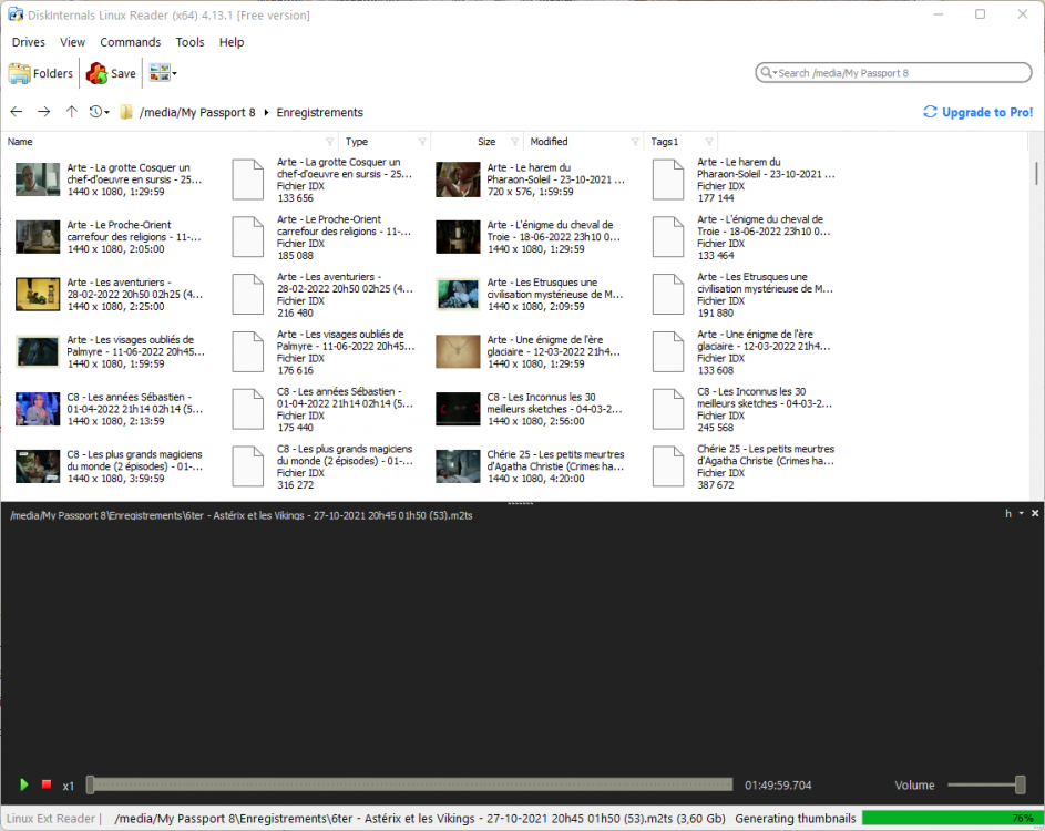 Si j'ai bien compris, je dois d'abord installer ce Reader de fichier Linux, ensuite je pourrais accéder à ces fichiers et les copier dans un répertoire Windows, de là je pourrai en faire une sauvegarde, Mais : il faut aussi que je puisse aussi continuer d'utiliser ce disque My Passport sur ma Freebox pour enregistrer d'autres programmes : la Freebox crée une arborescence pour pouvoir accéder à ces programmes dans le Reader Freebox sur ma TV en affichant les titre et autres infos d'enregistrement, et je lis ces programems enregistrés sur la TV avec le lecteur Freebox.