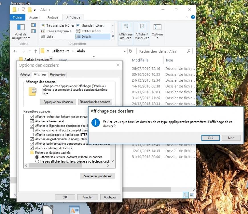 Merci Yves ... Pour l'instant , je n'ai pas accès à mon PC ... c'est ma compagne qui l'utilise après 20h30 ... ... Mais je viens de tester sur l'ordi de mon fils un Dell comme le mien sous Windows 10 Pro également ... il n'y a pas de problème pour afficher les dossiers cachés ... Je revois ça sur le mien demain matin ... Bonne soirée ... c@t alain
