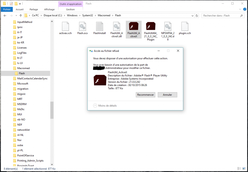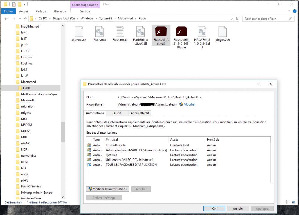 Slt Roger1, heuuu si pour l'invite de commande je suis en mode administrateur (regarde plus haut posté il y a 17h). Pour l'essai ben ordi 1 et moi 0 donc toujours même point de départ il me demande toujours mon autorisation en mode administrateur lol, quand j'ai fait la manipe lusrmgr.msc j'ai regardé sur mon nom si j'avais aussi l'encoche pour "compte désactivé/activé" y'en avait pas donc en toute logique j'aurai du avoir les mêmes droits que ce que tu m'as fais avoir. je te mets les 2 captures, en revanche comme je disai à Le Crabe j'ai pas la possibilité de pouvoir modifier les autorisations pour avoir un contrôle total sur le fichier/dossier que je veux supprimer (c'est peut être plus simple je sais pas ??). Dis moi ce que tu en pense (à moins que je supprime cette MAJ mais elle voudra se réinstaller c'est sur).