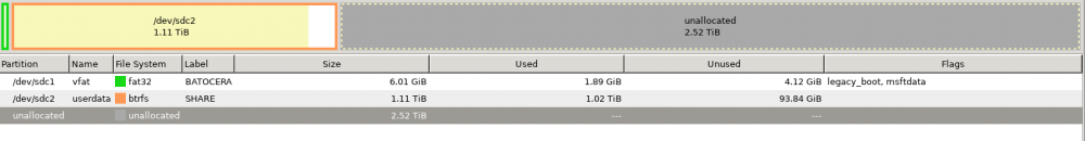 Bonjour . Merci tout d'abord pour vos réponses ... Alors : J'ai ce disque totalisant 4 TO mais occupé par deux partitions (sdb1 et sdb2 de environ 2TO) au total : Je souhaiterai en faire une img en dont la taille ne ferait QUE (sdb1 et sdb2). Pour ensuite la splitter (mais ca serait apres) .... Je me suis base sur ce tuto (qui me semblait logique ) : https://linuxconfig.org/how-to-shrink-usb-clone-dd-file-image-output Dans ce cas je devrais etre satisfait par la commande : L'operation est en cours ... mais je suis deja "perplexe" si je regarde dans la copie est en cours a 1,9 TO et c'est pas encore fini... je suis pas sur que ca marchera. En tout cas je n'avais jamais fait de dd aussi gros... c'est super long