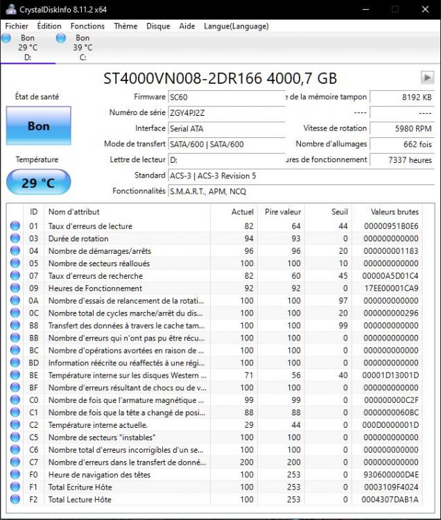 Merci de ta réponse @calisto06 Petit problème le programme pour teste les rams ne fonctionne pas... j'ai un message d'erreur qui me dit que le disque est endommagé, j'ai essayer de le télécharger plusieurs fois mais rien n'y fais. Pour les disques j'ai effectué le teste, je met les résultats :)
