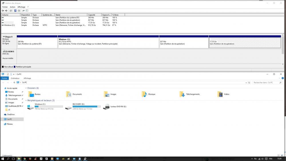 questions: J' ai donc un hdd et 4partitions (voir fichiers joints): je dois donc supprimer toutes les partitions sauf celle nommée 'recovry' (dans mon cas D 17.55Go) ?