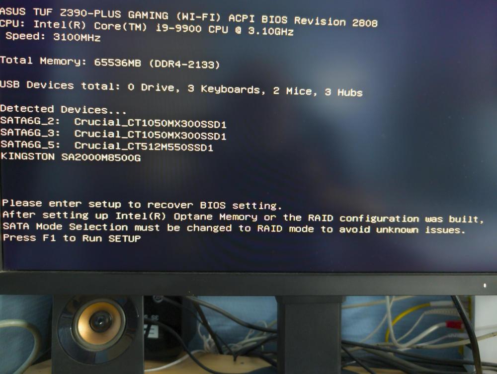 Après avoir configuré la mémoire Intel(R) Optane sur la configuration RAID, la sélection du mode SATA doit être changée en mode RAID pour éviter des problèmes inconnus. Appuyer sur F1 pour entrer dans le BIOS.