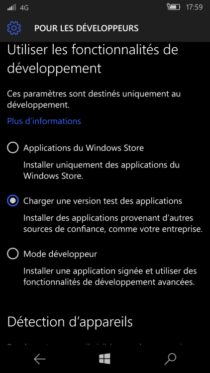 Bonjour à tous après quelques semaines d'absence me voila de retours et pour me faire pardonner voici un petit cadeau sympa qui part d'une bonne petite intention L'application Le Crabe Info débarque Hihihi en espèrent que cette initiative fasse plaisir à notre administrateur @Le Crabe ainsi qu'à ses modérateurs @Le PoissonClown @Mreve et les autres s'il y en a d'autres que je n'ai pas encore eu l'occasion de croiser !!!!! Je vais vous dévoiler la démarche à suivre pour installer cette application elle n'est pas encore présente dans le Windows store déjà c'est un sacré bazar pour le faire mais pour cela il faut l'autorisation de notre administrateur @Le Crabe ce qui est normal ; l'application est en Version test . 1) Téléchargez l'application Windows App Studio Installer sur votre Windows phone 10 dispo sur le store , pour le PC c'est par là ICI et cliquer sur obtenir l'application , ça vous ouvrira le Windows store sur le PC 2) Une fois cette application installée que ce soit sur votre Lumia (Windows phone 10) votre PC ou votre tablette activez le mode développeur (Voir Screenshot) Sélectionnez "Charger une version test des applications" Version mobile Version PC et tablette 3) Une fois le mode développeur activé RDV dans l'application Windows App Studio Installer et utilisez le lecteur QRCODE intégré car 70% des lecteurs QRCODE dispo sur le store son foireux ça fait peur "Au Secours" onglet en haut à droite sélectionner QR Reader et flashez le QRCODE que je vais vous communiquer en bas de ce tuto Oui Oui en bas du tuto "Malin le Lynx" comme ça je suis sur que vous lisez le tuto jusqu'au bout Screenshot Lecteur QR READER 4) Une fois flashez vous vous retrouver ici il suffira de cliquer ou d'appuyer sur Install FINI voici ce que ça donne sur mon Lumia une fois installé En espèrent que ce tuto vous ait plu et que vos soyez nombreux à utiliser l'application. Je le rappelle l'application est en Version Bêta donc si vous constater des bugs faite en part dans les commentaires J'oubliais presque de vous communiquer le QR CODE qu'il est vilain LE VOICI ASTUCE : POUR CEUX QUI ON UN PC PORTABLE IMPRIMEZ LE QR CODE ET FLASHEZ LE AVEC LA WEBCAM . POUR CEUX QUI ONT UN PC FIXE VOUS AVEZ JUSTE A DÉPLACER VOTRE WEBCAM
