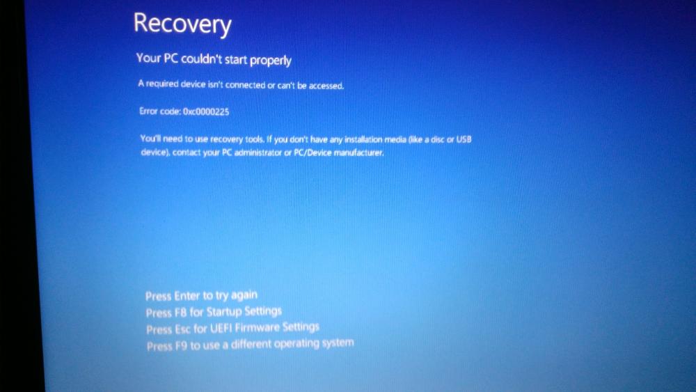 1. Bonjour, Je rencontre un assez gros problème. Je sais pas si la question a déjà été posée dans ce cas, j'en suis désolée... J'ai installé windows 10, du moins essayé, après deux échecs consécutifs, j'ai voulu essayer une dernière fois, j'ai programmé la mise à jour qui s'est donc lancée toute seule. Sachant que cela allait prendre un certain temps, j'ai fait autre chose à coté, Quand je suis revenue l'ordi était éteint car il n'avait plus batterie (du moins c'est ce que j'en ai déduit) donc j'ai voulu le rallumer : j'ai droit au logo de windows 10, puis un rapide message en français qui me dit qu'il y a eu un problème (j'ai pas le temps de lire quoique ce soit) après il y a le logo de la marque de l'ordi et ensuite j'ai ce message (voire photo) C'est assez important car l'ordinateur ne m'appartient pas, c'est un ami qui me la prêté pour que je lui fasse la mise à jour de windows 10, (pour mon ordi tout c'était bien passé... ) Sachant que je ne suis pas une pro de l’informatique, est-ce que c'est possible de faire que je puisse faire quelque chose sans aggraver la situation ? Petit info qui pourrait être utile : l'ordi était sous windows 8