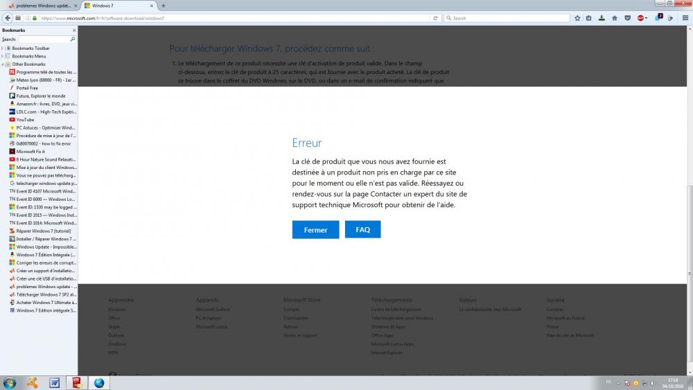 J'essaye de telecharger l'ISO chez windows et cela raconte ù^&^!,;,;:;!;!m,! Erreur La clé de produit que vous nous avez fournie est destinée à un produit non pris en charge par ce site pour le moment ou elle n’est pas valide. Réessayez ou rendez-vous sur la page Contacter un expert du site de support technique Microsoft pour obtenir de l’aide. M.... !