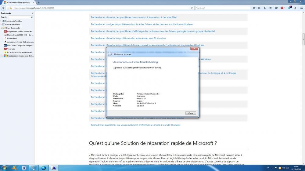 Re j'ai appellé Microsoft,genre contact par tel il m'on répondut et dis que le probleme de windows Update venait d'eux qu'il était en train de travailler dessus et qu'il fallait attendre bon a voir!