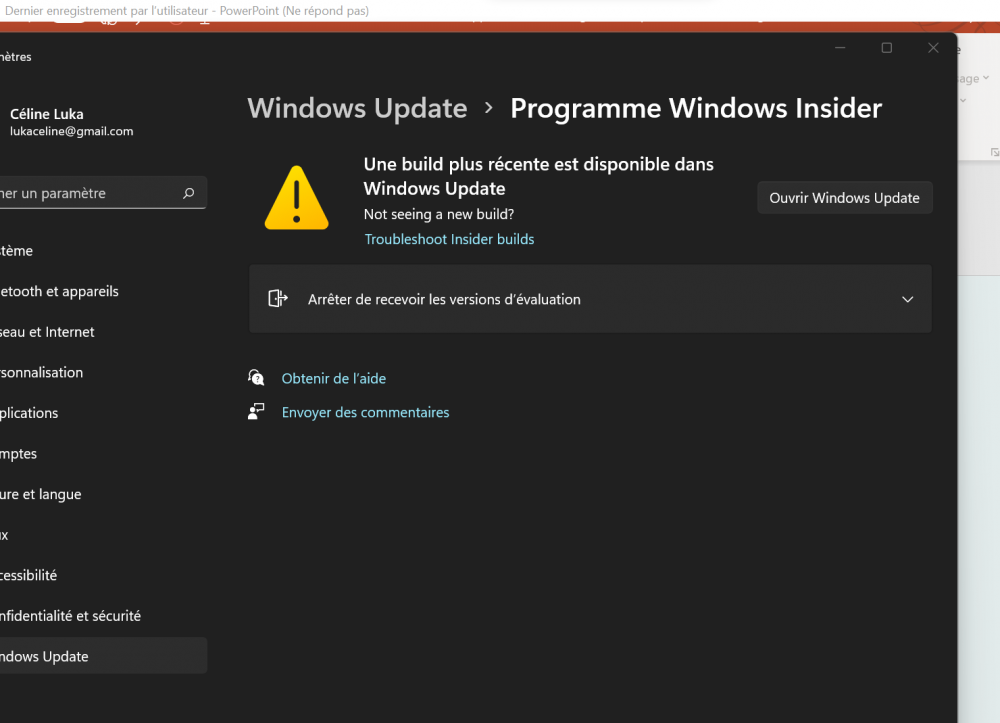 J'ai effectué la mise à jour win11, programme insider dev et après moulte réinstallation et réinitialisation ... le programme déclare avoir un build plus récents et quand je vais à la mise à jour le pc ne me trouve plus rien...