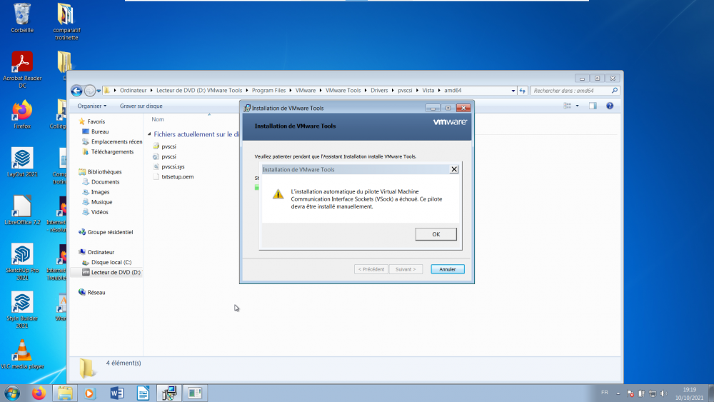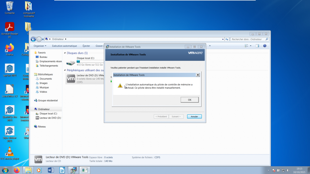 15. Bonjour J'ai opté depuis peu pour VMware à la place du Virtualbox (Faible puissance et beaucoup d'incompatibilité, notamment les dernières versions OpenGL) Et je dois donc installer, afin d'activer l'accélération 3D VMware Tools mais lors de l'installation il m'affiche ces erreurs Et il annule l'opération. Pouvez-vous m'aider svp ? Merci de vos réponses Bonne journée ou soirée