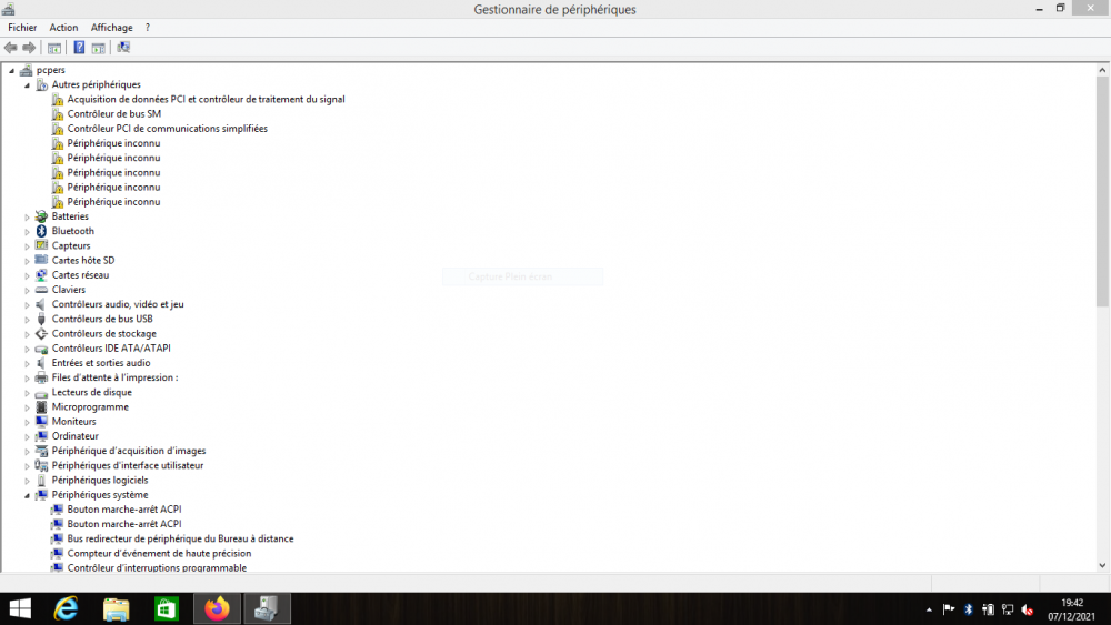 7. Bonjour, J'ai un gros problème sur mon PC portables (ASUS E410MA-BV170TS) : Il me manque beaucoup trop de drivers. J'ai récemment fait une installation de Windows 8.1 et j'ai remarqué qu'il me manque : -Les drivers du Pavé tactile (et le ASUS NumberPad aussi), j'utilise une souris pour utiliser mon ordi -Les drivers graphiques Intel UHD Graphics 600 -Les drivers ASUS Control Interface System V2 -Les drivers ASUS Splendid Voici un aperçu de Mon Gestionnaire de Périphériques : J'ai fait le tour de plusieurs sites (à commencer par les sites officiels) et ils m'affichent ces types d'erreurs : -Intel : Et quand j'essaie d'installer les drivers ASUS Windows me fait cette erreur "Cette application ne peut pas s'exécuter sur votre PC". Pour trouver une version pour votre PC, renseignez-vous auprès de de l'éditeur de logiciels Heureusement, j'ai réussi à installer certains drivers (comme les drivers bluetooth, wifi, etc...) Merci de vos réponses, Bonne soirée