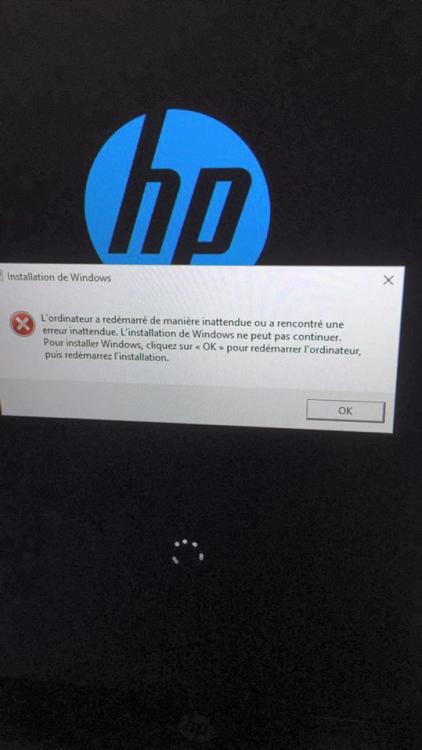 2. Bonjour/ bonsoir, J'ai récemment reçu l'ordinateur de ma tente avec un petit problème, je n'arrive pas à le résoudre. Le problème est qu'elle a essayée de reformater son ordinateur portable sous windows 10, sauf que quand je l'allume il m'indique un message d'erreur et relance l'ordinateur. Je laisse une image pour vous faire une idée du problème. Le problème en image