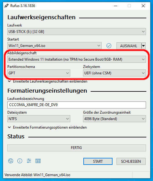 8. hello @klipoute je ne vois pas vraiment de choses a changer avant d'avoir essayer de passer W11 sur le pc. Certes il faudra pas aller chercher la dernière version de W11 mais une ancienne version pourrait tout a fait fonctionner sur le PC. Votre CPU est un peut vieux mais peut encore faire l'affaire si cela n'est que pour du surf et quelques petits programme a faire fonctionner. tenter avec Rufus comme ceci : attention a la partie : partition scheme et target system peut être votre pc est du format MBR et Bios or CSM