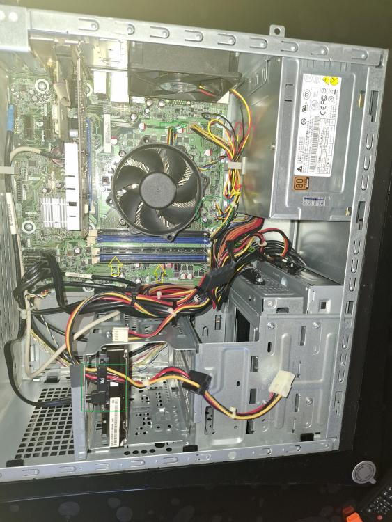 si c'est votre pc Acer Aspire les beep c'est pas plutôt un long et deux court? Si oui, c'est la carte graphique. alors ici : encadré rectangle en vert c'est les connecteurs de votre disque dur. Je ne vois rien d'anormal les deux flèches jaune cela montre vos Ram, elle sont en Dimm 1 et 2 (l'est avez vous retirer??) si non première vue rien d'anormal entourer en rond vert, ce sont vos ventilateur, les voyez vous tourner ou se mettre en marche, mais si non je vois rien d'anormal flèche verte c'est l'alimentation CPU je vois rien d'anormal Qu'avez vous en fait débrancher pour retirer cette alim?? Juste les câbles qui sortait de l'alimentation ou alors vous avez tout retirer ? -