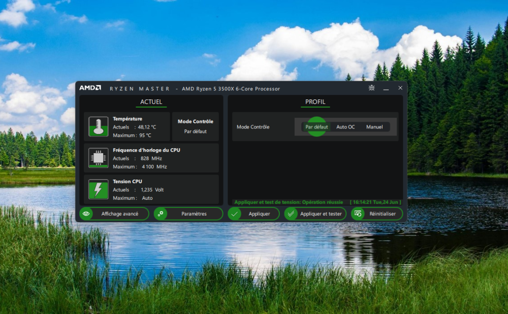 peut etre tenter de regarder avec AMD ryzen master sans toucher au reglage mais regarder un peut le monito une visibilité sur les paramètres système importants comme la température, la vitesse et les tensions du CPU.