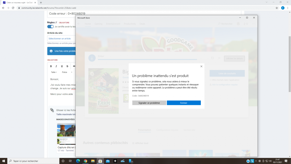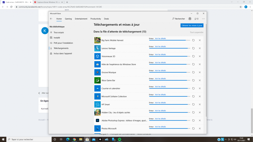 J'ai voulu faire mes mises à jour de mes applications sur Microsoft store et je reste bloqué sur un code erreur 0x80246019. J'ai fait tout ce que j'ai trouvé sur google mais rien ne change. Je suis sur Windows 10 familial