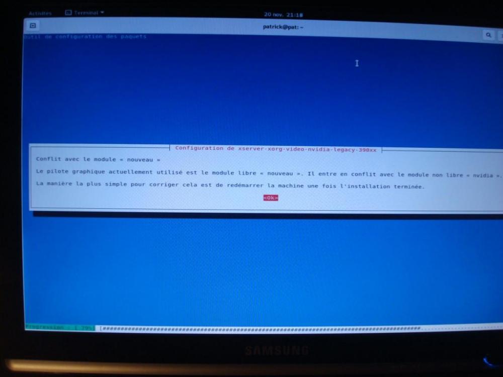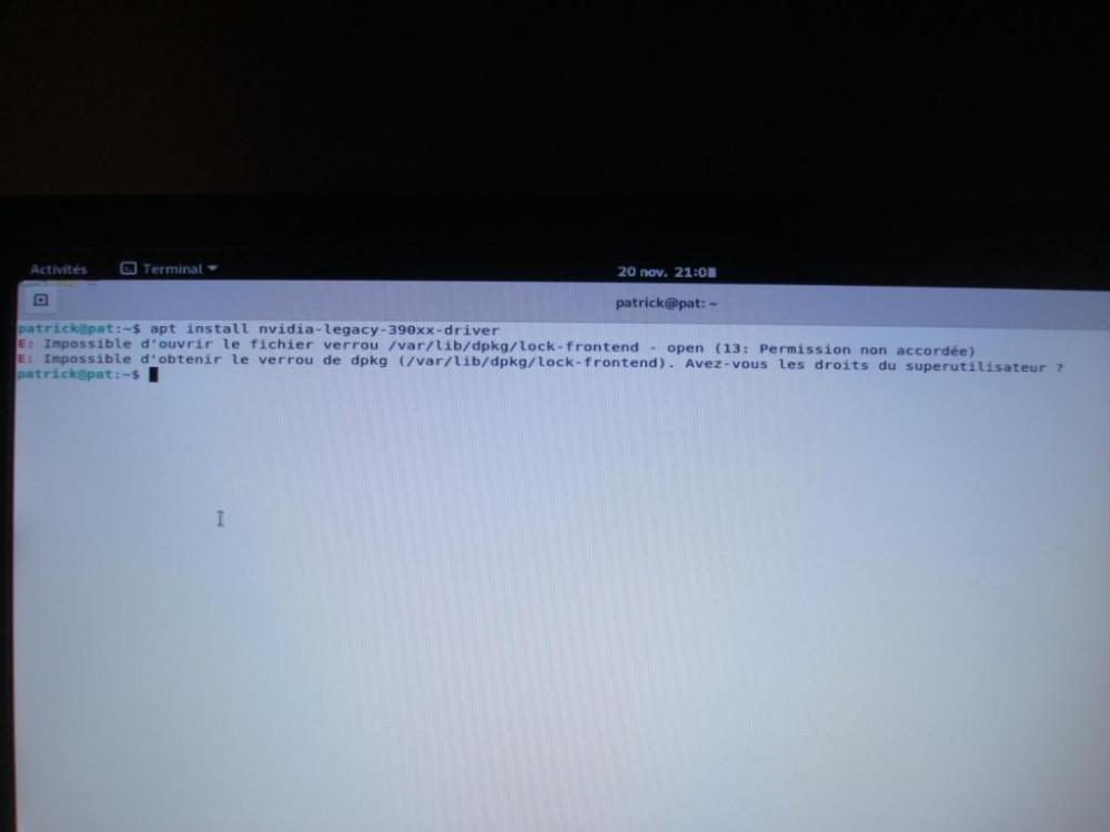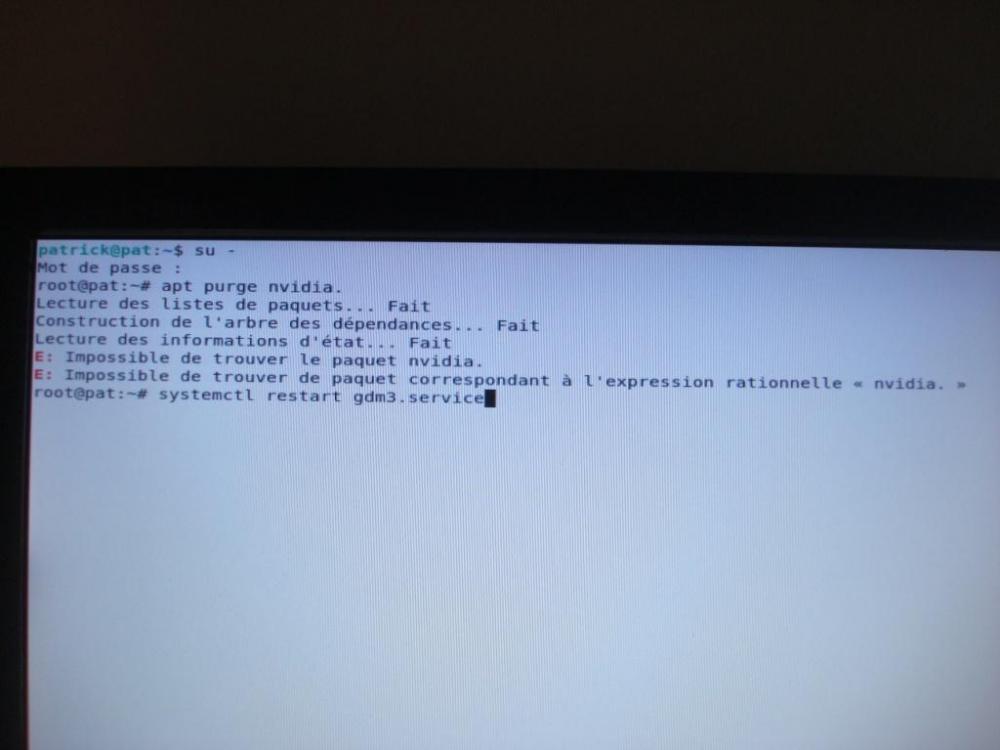 juste 1 info il fallait que je retape les cdes depuis le début ou celles ci systemctl restart gdm3.service apt install --reinstall xserver-xorg apt install --reinstall xserver-xorg-video-nouveau killall Xorg reboot
