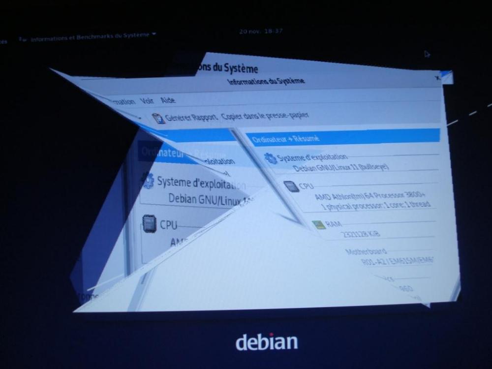 j'ai réussi à avoir un écran à peu près potable sur hardinfo,quelles infos tu as besoin?