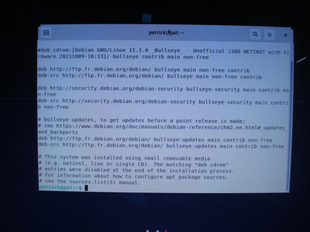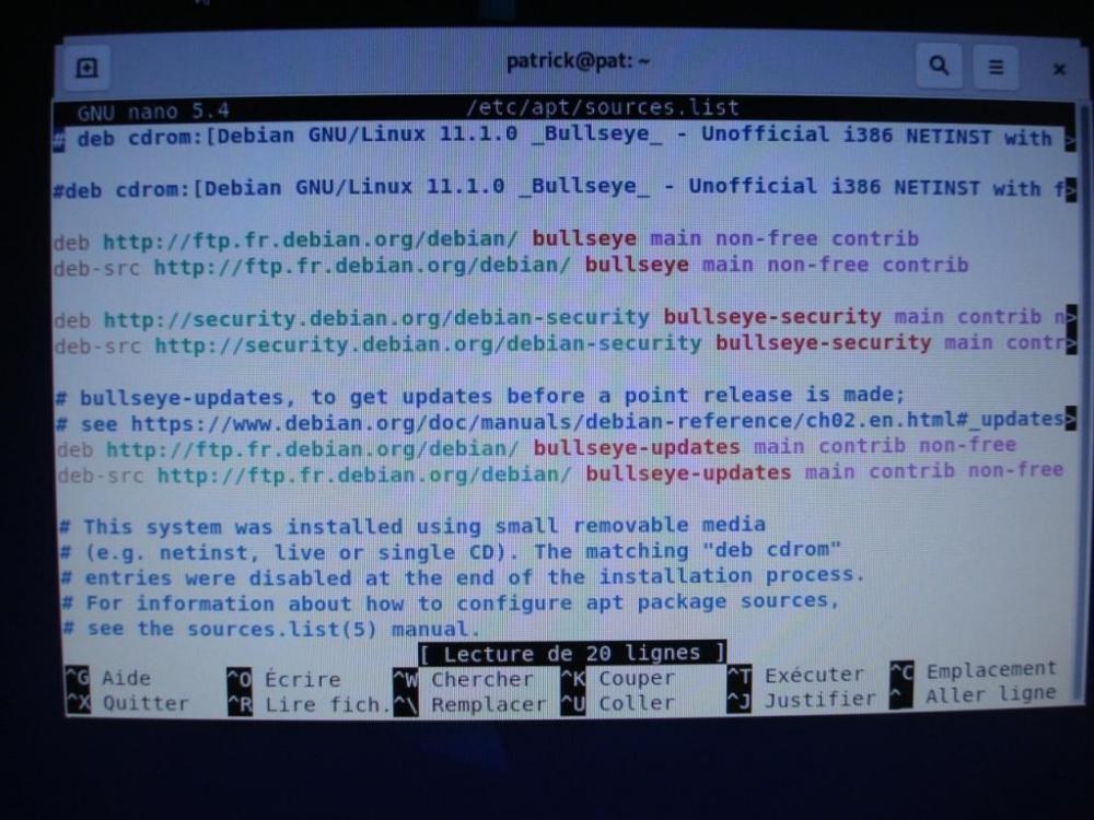 bonsoir, j'ai installé DEBIAN sur le pc mais je n'ai pas eu le temps de configurer.j'ai redémarré la machine et j'ai différentes pages qui s'affichent et sur lesquelles je ne vois pas grand chose (( voir photos). lorsque je suis sur la page d'accueil, comment je procède pour me connecter avec le compte super utilisateur pour éditer le fichier SOURCES.LIST.