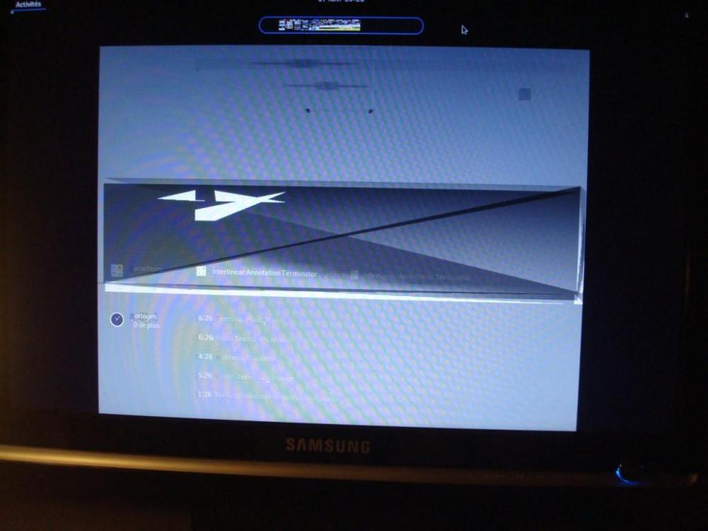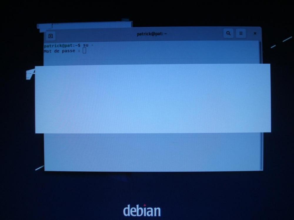 mon écran d'accueil ne ressemble pas à celui que je viens de t'envoyer ,il n'y a pas la barre de taches, en plus voilà un exemple d'écran que j'ai lorsque je tape terminal. ce n'est pas un problème de résolution d'écran??