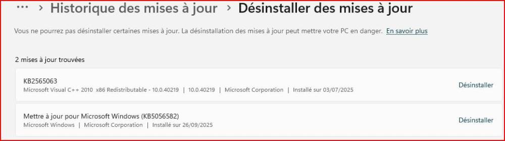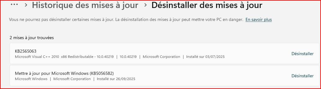 je reviens vers vous si j'ai encore le clavier intégré au pc pas de soucis j'ai fait les deux manips sans succés d'ailleurs avec :dépannage /options avancées désinstaller des mises à jour : il n'est pas possible de désinstaller les mises a jours (Windows 11 Insider Preview) elle ne se voit pas pour la désinstallation en mode sans échec pas de soucis pour arriver jusqu'a :Paramètres > Windows Update mais pour aller désinstaller des mises à jour. pas possible car j'ai le message suivant :Pas d'accés internet aucunne connexion disponible et j'ai cocher réseau pourtant . pas facile