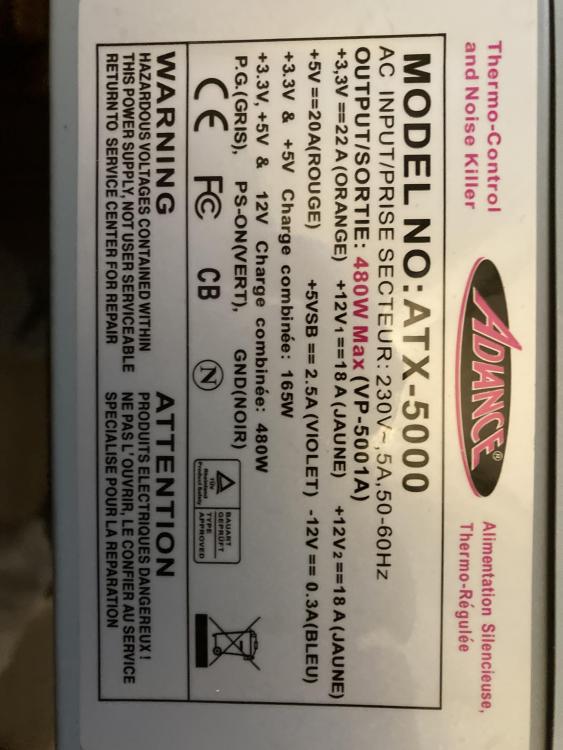 5. Je ne connais personne qui puisse me prêter une alim par compte moi là j'ai celle là qui a été fonctionnelle sauf que la prise CPU est une 4 broches. Bon il y a sur la carte un 4 broches mais là il ne va pas manquer de jus? Elle est un peut plus puissante en Watt mais votre oeil d'expert peut me dire avec l'étiquetage