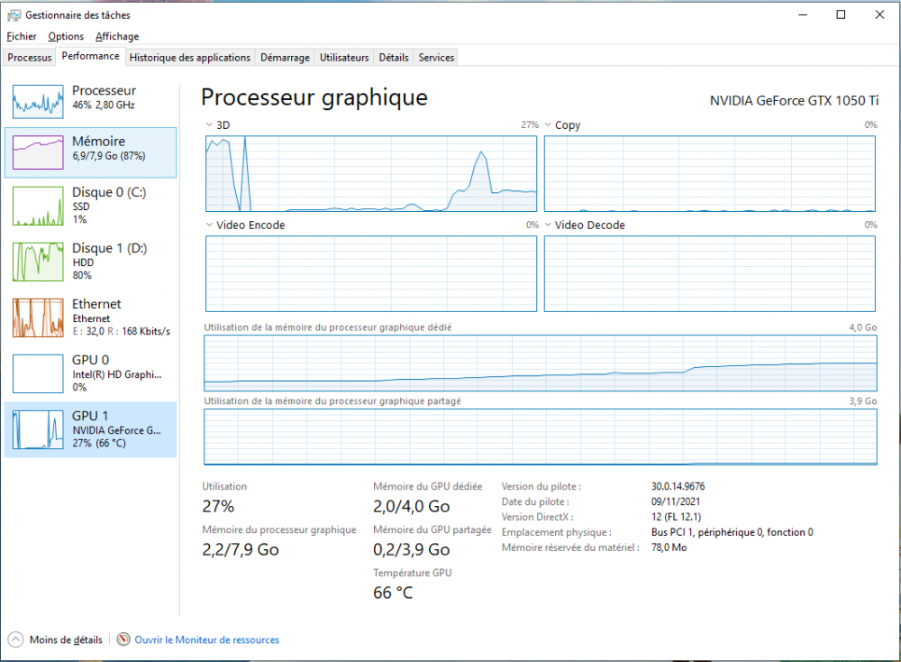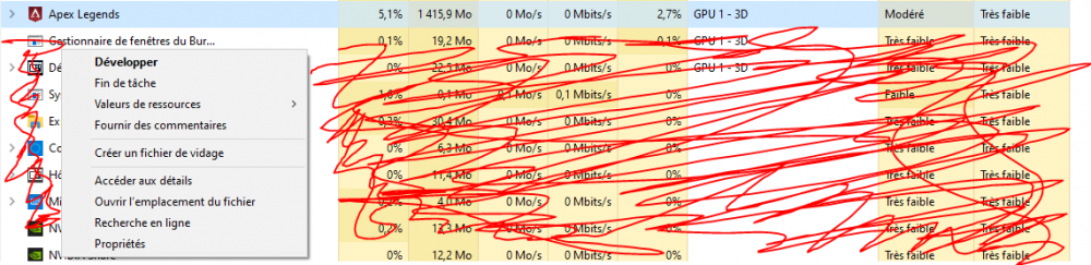 @calisto06 Bon je suis aller voir dans le gfestionnaire des tache mais quand je vais dans "plus de details" puis que je fais clique droit cela ne me propose pas "GPU" comme sur la photo dans le lien que vous m'avez envoyer. Voila ce que cela fait :