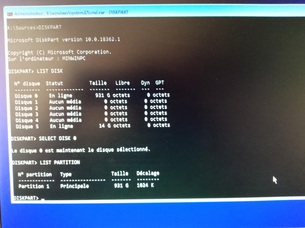 LE disque 0 est maintenant le disque selectionner -
