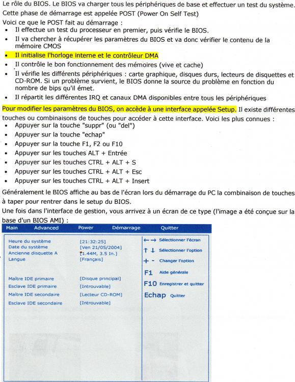 Je reviens vers vous avec mon problème d'installation Windows 7 ou 10. Malgré ce qui a pu être écrit ça et là, j'ai réussi à installer et activer, Windows 7. Il fonctionne "presque" parfaitement. Le seul problème est que je ne peux pas mettre à jour ni l'heure ni la date. Je modifie bien ces paramètres à partir de Windows mais à chaque arrêt le PC perd ses réglages. Je pense fortement que ça doit venir du Bios que je ne peux ou ne sais pas ouvrir. J'arrive à ouvrir quelques pages mais qui n'ont aucun rapport avec la programmation des paramètres. J'ai fait Echap, F1, F2, F10, F12, Supp, Tab, etc. qui m'ouvre certaines pages mais pas la (ou les) page(s) qu'il faudrait.