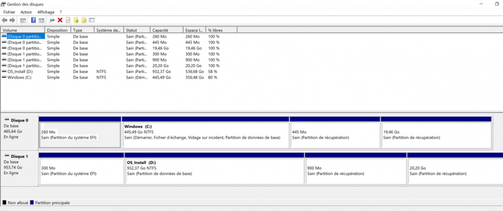 les deux disques sont bien reconnu dans la gestion de disque.
