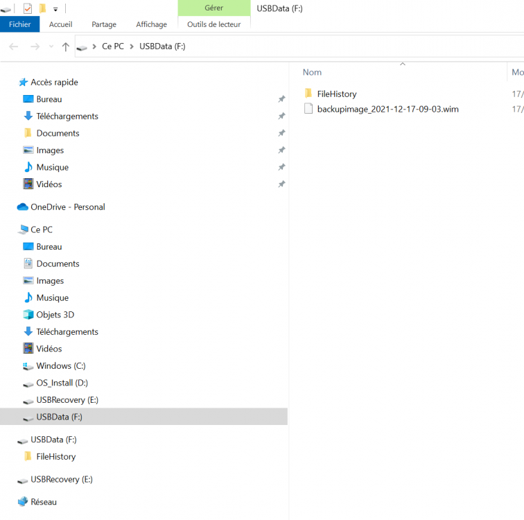 Le disque externe est reconnu dans l'explorateur de fichier, je peux l'utiliser pour copier des documents ou autre mais impossible de copier une image système sur celui ci.
