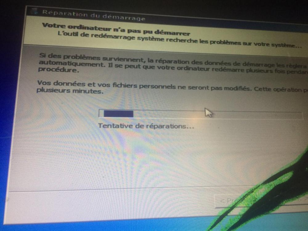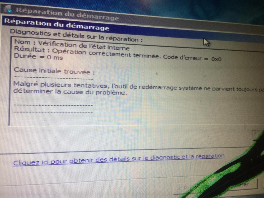 3. Oui j'ai mon dvd d'installation utilisé initialement, j'ai essayer avec Réparer mon installation, sans succès La réinstall ne fonctionne pas car "il s'agit du disque de démarrage bla bla bla"