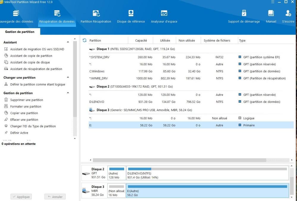 Bonjour à tous, Je suis en possession d'une mini carte mémoire (PRO PLUS Smart Card 64GB) que je souhaite formater. La mini carte est placée dans un adaptateur Micro SD. J'ai bien essayé la manière traditionnelle simple mais impossible d'exécuter cette manoeuvre. Lorsque je me rends sur la gestion de disque, il est indiqué que la carte est en RAW et c'est pour cela que je ne peux la formater. Pouvez-vous me conseiller. Merci