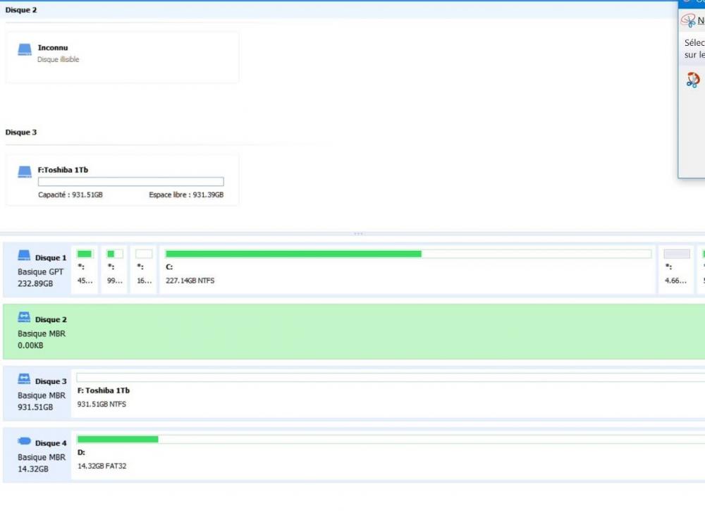 Après avoir fait quelques manipulations de partionnement, j'ai malheureusement un disque qui apparait mais ne répond plus.