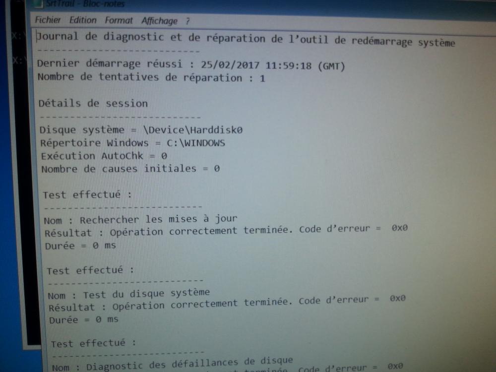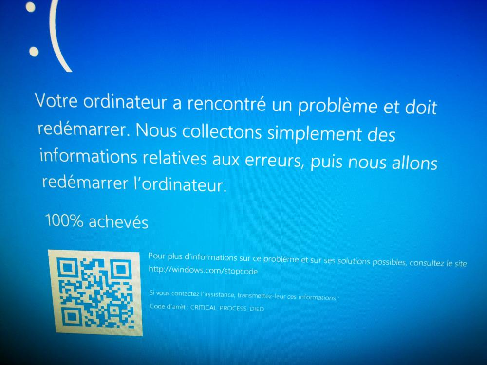3. Bonjour à tous, j'ai un os Windows 10 qui se lance plus, j'ai tout essayé niveau dépannage, réinitialiser, démarrage avec diagnostique, remise à zéro (usine), point de restauration, même via commandes Dos, à chaque fois ça me renvoie sur l’écran de critique du Windows avec une tête qui fait la tête : (. J'ai même essayée via MediaCreationTool.exe de Windows pareil rien. J'ai aussi remarqué que l'heure et la date indiquées dans le bios n'est jamais à l'heure malgré que moi je remet à chaque fois à jour. Parfois aussi j'ai ce message d'erreur : c: \Windows\System\Logfiles\str\strtrail.txt Pour info pour finir j'ai un ACER ASPIRE Z 1-623. Si vous avez une solution je serais très reconnaissante merci à vous d'avances pour vos réponses.