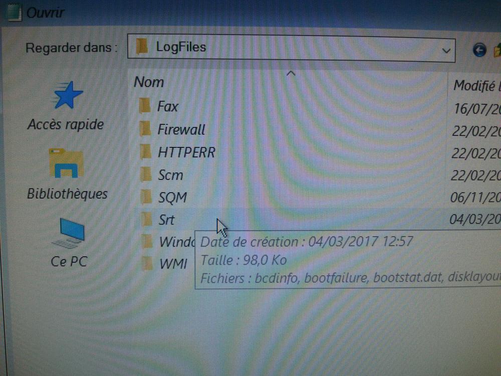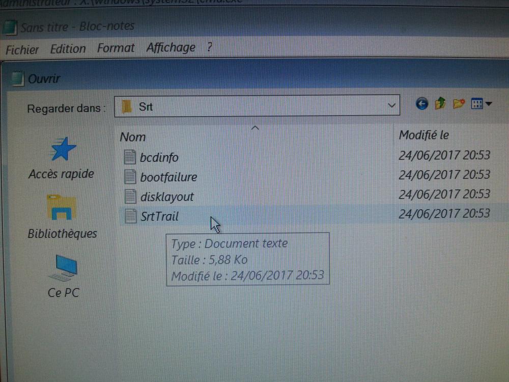 2. Bonjour, Tout d'abord merci pour votre réponse. J'ai déjà démonter le pc j'ai vu le D DUR et le ventilateur mais pas de pile CMOS, mais pour l'heure et la date qui correspond pas je le savais que ça vient de la pile. Votre photo ne correspond pas avec l’Acer Aspire Z 1 ce n'est pas le même model Je n'ai pas encore réinstaller W10 , simplement en mode (Réparer) et même en MediaCreationTool.exe , à chaque fois quelque soit l'option ça revient toujours au même message d'erreur : "Critical Process Died" et avec parfois en plus : C:\Windows\System\\logfiles\str\str\strtrail.txt VIa la commande DOS en mode "Dépannage" je la commande "notepad" puis "ouvrir" puis je vais sur " c: " puis " Windows " puis " System32 " puis " logfiles " puis " srt " puis " srttrail " mais je vois pas. J'ai une photo du pc démonté.