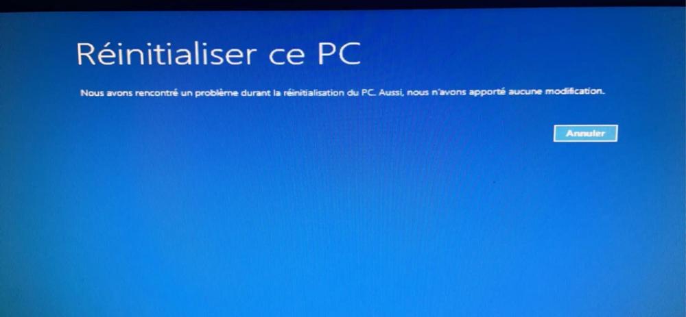 4. Bonjour, j’essaye de réinitialiser mon pc entièrement, sans garder aucun fichiers, du à plusieurs problèmes présents dans mon pc, sauf que lors de la réinstallation de windows, après 4%, windows marque qu’une erreur est présente et donc annule la réinitialisation et les modifications. Est-ce quelqu’un aurait une solution pour réparer ce problème, ou tout simplement pouvoir réinitialiser mon pc entièrement plus facilement, Merci d’avance Ps : je n’y connais quasi rien en informatique.