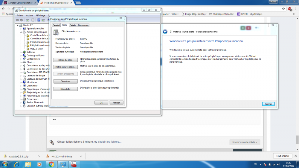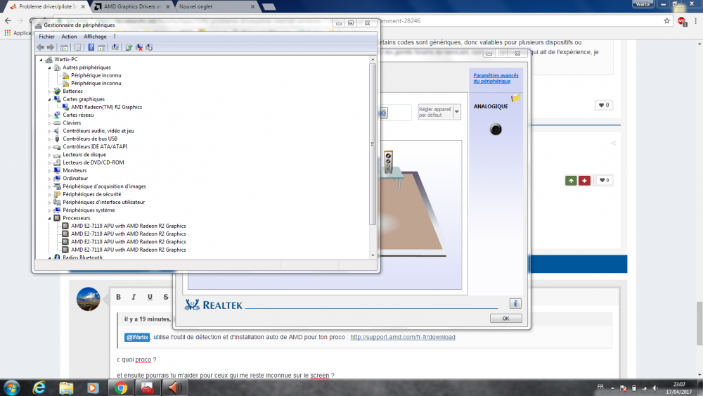 non moi je parlais des peripheriques avec le panneau attention ceux inconnus au bataillon que j'aimerais regler ? si possible ???