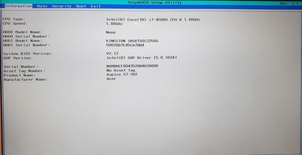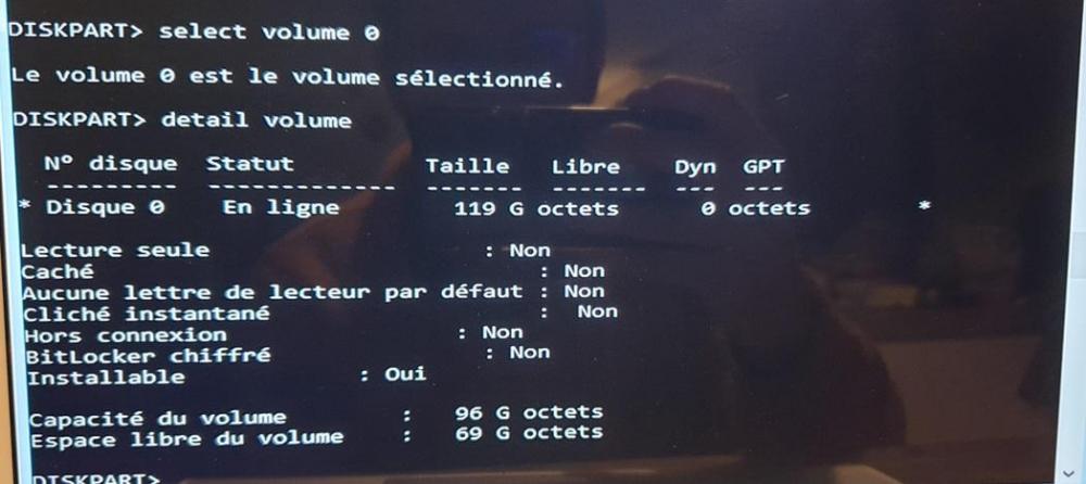 1. Bonjour, J'ai un PC portable Acer aspire s7-392, qui ne démarre plus avec l'erreur "no bootable device" au démarrage. Avant plantage le PC était sous Windows 10 avec sa configuration par défaut : 1 partition système sous C: et une données sous D: Comme on peut le voir sur les photos que je joins à ce sujet : - Lorsque j'essaie de démarrer depuis une clé Linux, j'accède bien au disque données mais pas au disque système. - idem si je fais un diskpart depuis une clé de boot de Windows, je vois bien un disque avec 2 partitions qui semblent représenter au total le disque de données (et donc pas le disque système). Note : le second disque que l'on voit est ma clé usb de boot de windows. Voir image 1 pour la liste des disques et image 2 pour le détail des partitions. - et idem si je veux réinstaller Windows depuis ma clé live Windows (en choisissant une réinstallation) : je ne peux pas visualiser l'ancienne partition système, seulement celle des données : Voir l'image 3 pour la vue depuis l'installateur lancé depuis la clé Windows - enfin depuis le bios il est indiqué que j'ai "none" sur le hdd0 et un disque est vu sur le HDD1. Ce point me surprend puisque physiquement, d'après les caractéristiques techniques d'Acer, il y a bien un unique disque de 256go sur ce PC. Voir l'image 4 pour la vue du BIOS. J'ai tenté des tutoriels comme celui ici : https://pcsecurise.fr/demander/comment-corriger-lerreur-no-bootable-device-found/ Mais cela ne règle pas mon problème : en effet je ne peux pas faire l'étape 5 indiquée, car si je ne vois pas ma partition système, et si je tape la commande "active" dans diskpart sur l'autre partie du disque, j'ai une erreur "le disque sélectionné n'est pas un disque MBR fixe"). Auriez vous des idées ? Merci d'avance. Cordialement Dimitri